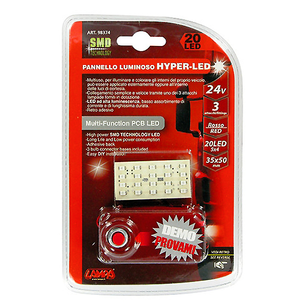 Πάνελ 20 Hyper-Led 24V, 25x50 mm (Κόκκινο)Συσκευασία 1 τεμαχίου. Για μεγάλη διάρκεια ζωής και χαμηλή κατανάλωση ενέργειας. Με 3 αντάπτορες.