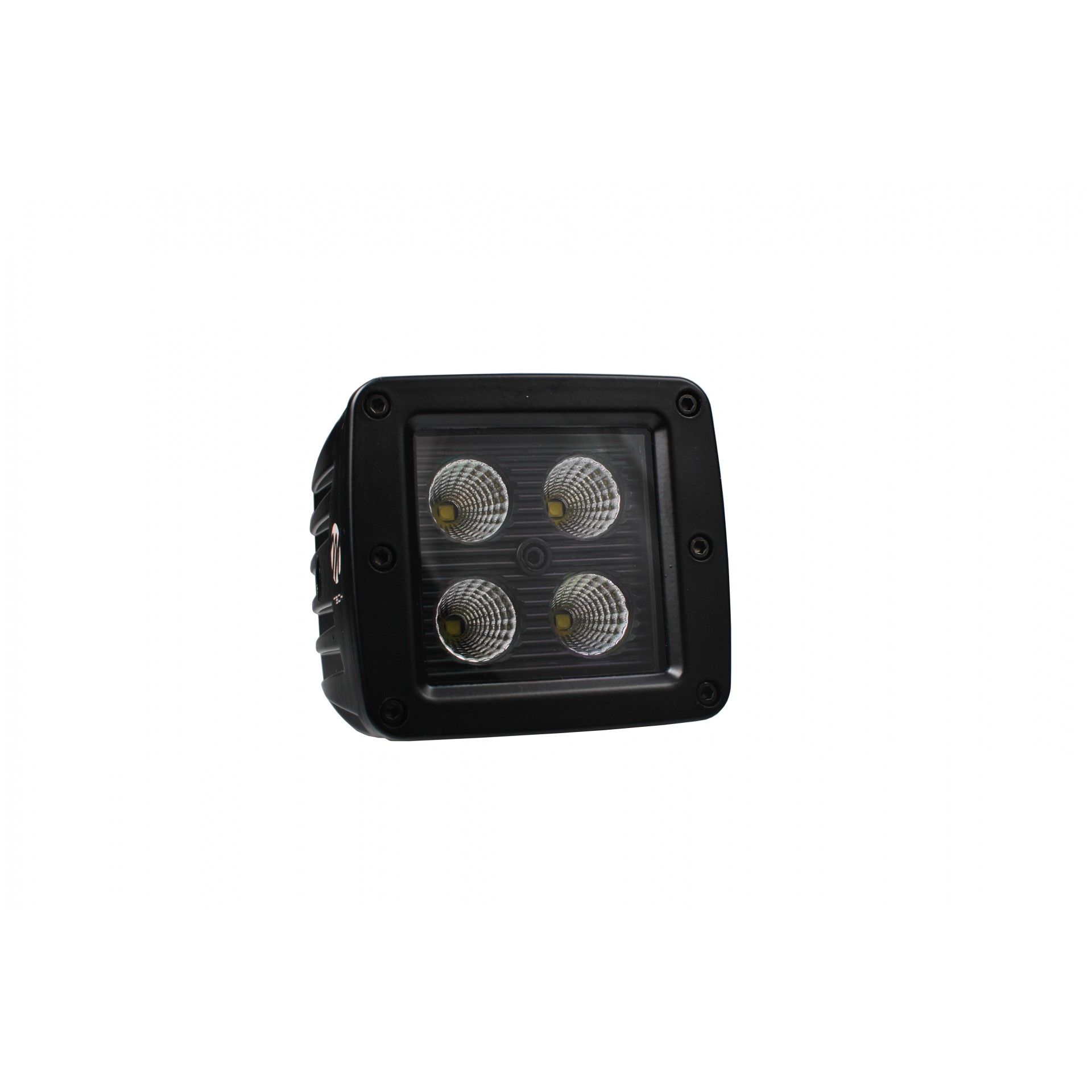 Προβολέας εργασίας από την M-TECH, εξοπλισμένος με 4 cree led λευκού φωτισμού κατάλληλος για εξωτερική τοποθέτηση σε αμάξωμα αυτοκινήτου, SUV, φορτηγού, van ή τρακτέρ, ώστε να προσφέρει περισσότερη ορατότητα κατά την διάρκεια εργασίων σε δύσβατες περιοχές, για χρήση σε αγροτικές εργασίες, χωράφια ή αγρούς, κ.ά. Ο τύπος φωτισμού του συγκεκριμένου προβολέα είναι διάχυτος (flood beam) και δημιουργεί ένα ευρύ φάσμα φωτισμού κάθετα και οριζόντια. Ιδανικός για όλα τα οχήματα με τάση 10>32 V.