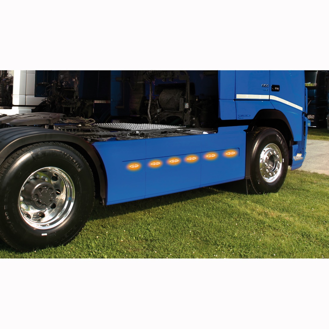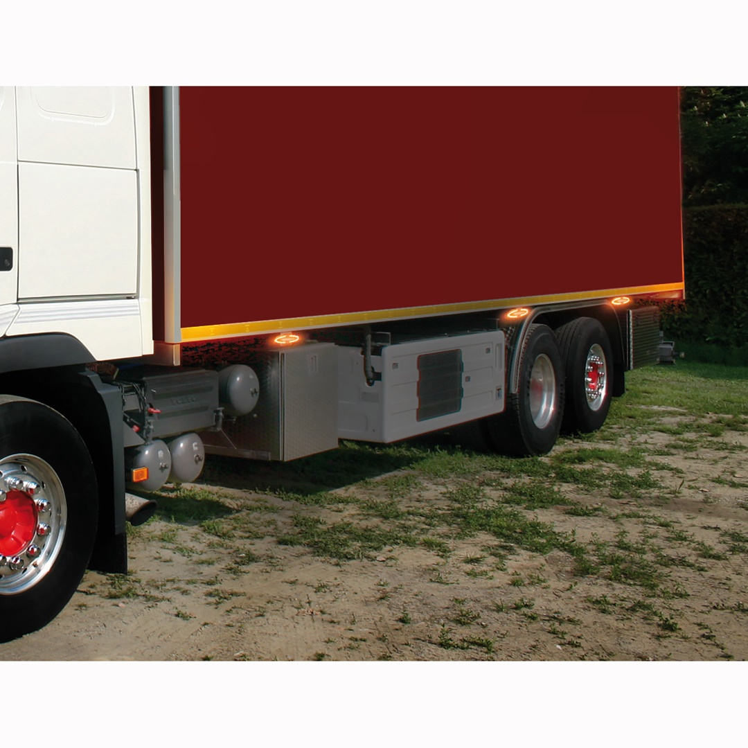 Φως όγκου κατάλληλο για την τοποθέτησή του στο εξωτερικό μέρος των φορτηγών για οριοθέτηση του όγκου του (μεγέθους του), καθώς και για να γίνεται αντιληπτό το όχημα από διερχόμενους οδηγούς. Διαθέτει 4 led τεχνολογίας SMD και με τάση 12/24v κάνοντάς το ιδανικό για τοποθέτηση σε αυτοκίνητο, φορτηγό κ.α. Το συγκεκριμένο φως όγκου διαθέτει περιμετρικό φωτισμό με ειδικό εφέ (o-led effect).