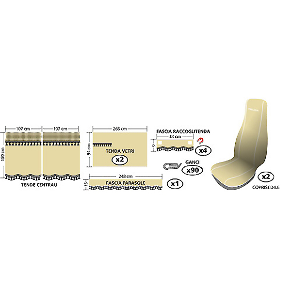Σετ καλύμματα - κουρτινάκια - σκίαστρα φορτηγού Melissa (Μπεζ), 11 τεμάχια. Διεθνή και εύκολα στην τοποθέτηση.