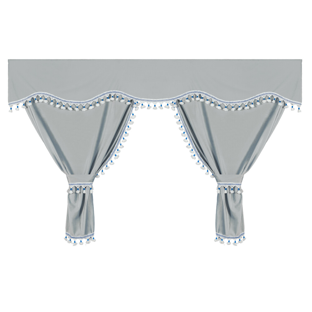 2 πλαϊνές κουρτίνες, 1 κεντρική κουρτίνα, 4 μαγνήτες, 1 επάνω κουρτίνα για παρμπρίζ, 90 πλαστικούς γάντζους.