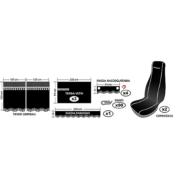 Σετ καλύμματα - κουρτινάκια - σκίαστρα φορτηγού Melissa (Μαύρο), 11 τεμάχια. Διεθνή και εύκολα στην τοποθέτηση.