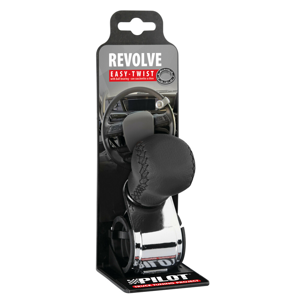 Τεμπέλης τιμονιού δερμάτινος μαύρος με μαύρη ραφή και χρωμιωμένο βραχίονα REVOLVE, από την εταιρεία LAMPA, ιταλικής προέλευσης.