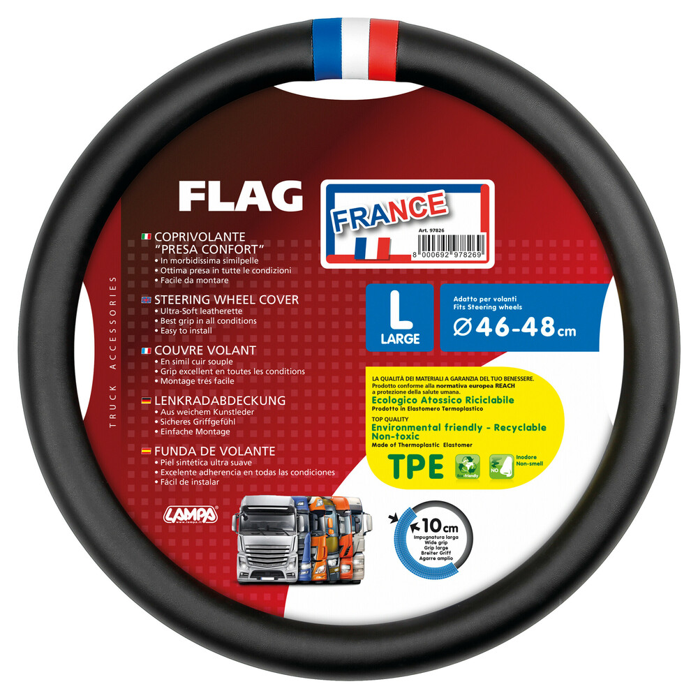 Κάλυμμα τιμονιού φορτηγού σημαία Γαλλίας μαύρο από δερματίνη οικολογικό και άοσμο από την εταιρεία LAMPA, ιταλικής προέλευσης.