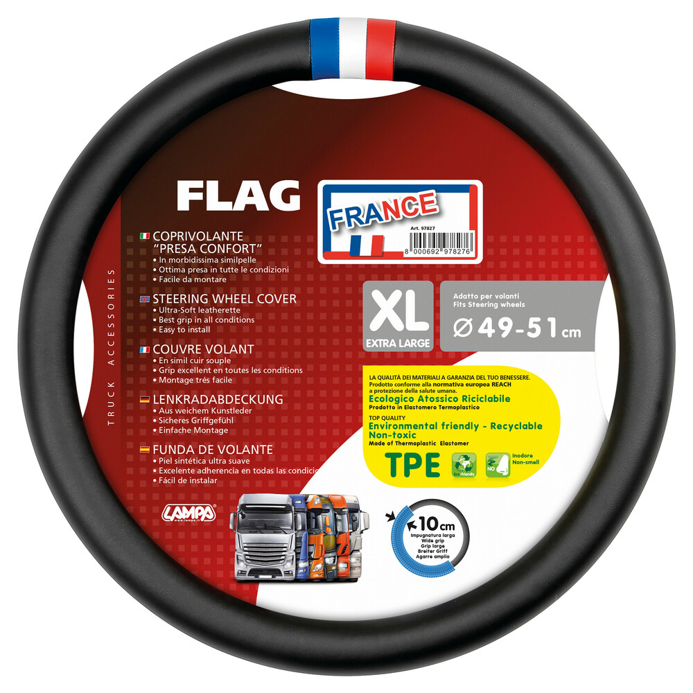 Κάλυμμα τιμονιού φορτηγού σημαία Γαλλίας μαύρο από δερματίνη οικολογικό και άοσμο από την εταιρεία LAMPA, ιταλικής προέλευσης.
