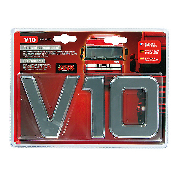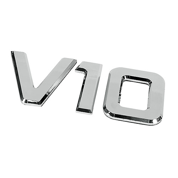 Αυτοκόλλητο μεταλλικό 3D σήμα V10 (210x92mm). Χρησιμοποιείται για εσωτερική και εξωτερική χρηση. Αδιάβροχο με ειδικό φινίρισμα χρωμίου.
