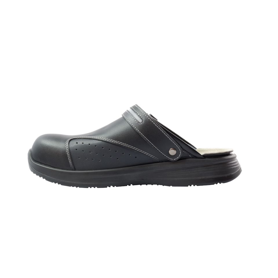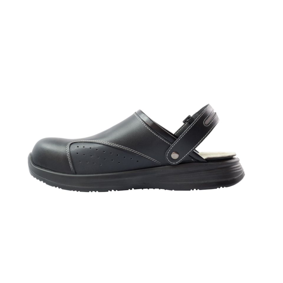 Εξωτερική σόλα, κάτω μέρος: Aπό μονοδιάστατη πολυουρεθάνη (mono-density PU), ανθεκτική σε κάμψη και φθορά με ενιαία, ομοιόμορφη πυκνότητα σε όλη την έκτασή της και ίδια σκληρότητα και δομή σε όλο το υλικό για σταθερή υποστήριξη και σταθερό πάτημα. Αρκετά ελαστικό υλικό για να απορροφά τους κραδασμούς, μειώνοντας την κούραση στα πόδια, ανθεκτικό στη φθορά και την κάμψη. Προσφέρει καλύτερη πρόσφυση σε ολισθηρές επιφάνειες (anti-slip), είναι ανθεκτική στην απορρόφηση από λάδια και λιπαρές ουσίες (anti-oil) για μεγαλύτερη διάρκεια ζωής.