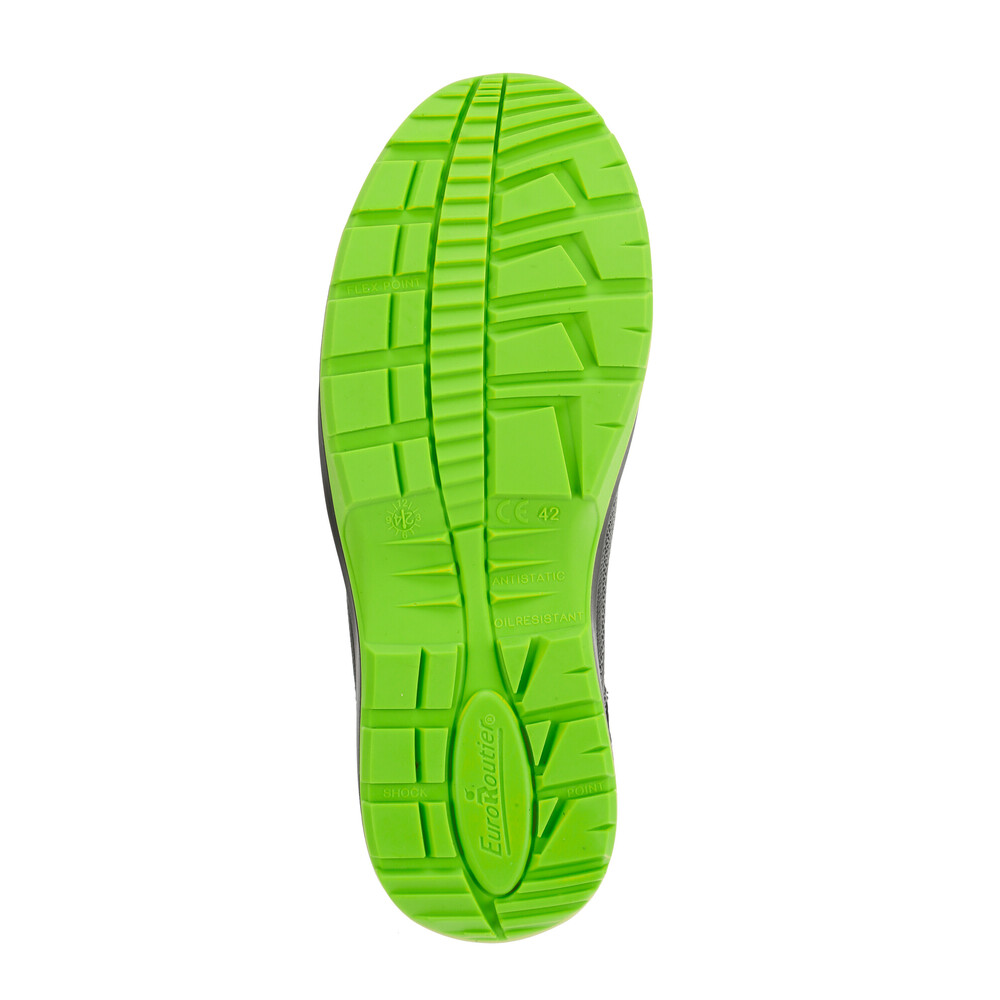 Πιστοποιημένα παπούτσια ασφαλείας εργασίας Hybrid από την εταιρία Euroroutier, ιταλικής προέλευσης, κατασκευασμένα από υψηλής ποιότητας υλικά σε συνδυασμό μαύρου και πράσινου lime χρώματος, πλήρως εργονομικά και ανθεκτικά, σχεδιασμένα για μέγιστη προστασία και άνεση σε απαιτητικές συνθήκες εργασίας. Ένα υβριδικό, εργονομικό μοντέλο παπουτσιών, που διαθέτει αναδιπλούμενη φτέρνα στο πίσω μέρος, η οποία είτε παραμένει ανοιχτή για να μπορείτε να τα φορέσετε ως κανονικά παπούτσια είτε παραμένει διπλωμένη προς τα κάτω για να μπορείτε να τα φορέσετε ως σαμπό. Ιδανικά για επαγγελματίες, που χρειάζονται αξιόπιστα παπούτσια ασφαλείας, προσφέροντας ευελιξία, ασφάλεια και προστασία σε δύσκολες συνθήκες εργασίας. Τα πιστοποιημένα παπούτσια Hybrid είναι, επίσης, κατάλληλα για επαγγελματίες οδηγούς, προσφέροντας άνεση και στυλ σε κάθε ταξίδι!