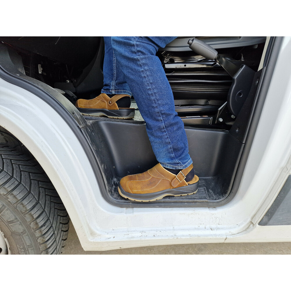 Πιστοποιημένα παπούτσια ασφαλείας εργασίας σε στυλ σαμπό Premium Tucson από την εταιρία Euroroutier, ιταλικής προέλευσης, κατασκευασμένα από υψηλής ποιότητας υλικά σε καφέ χρώμα με λευκές ραφές, που συνδυάζουν υψηλή απόδοση, άνεση και μοντέρνο σχεδιασμό, καθιστώντας τα ιδανικά για επαγγελματίες που χρειάζονται αξιόπιστα και ανθεκτικά παπούτσια ασφαλείας. Κατάλληλα για απαιτητικές συνθήκες εργασίας, είναι σχεδιασμένα για να προσφέρουν προστασία σε δύσκολες συνθήκες εργασίας. Τα πιστοποιημένα παπούτσια σε στυλ σαμπό Premium Tucson είναι, επίσης, κατάλληλα για επαγγελματίες οδηγούς, προσφέροντας άνεση και στυλ σε κάθε ταξίδι!