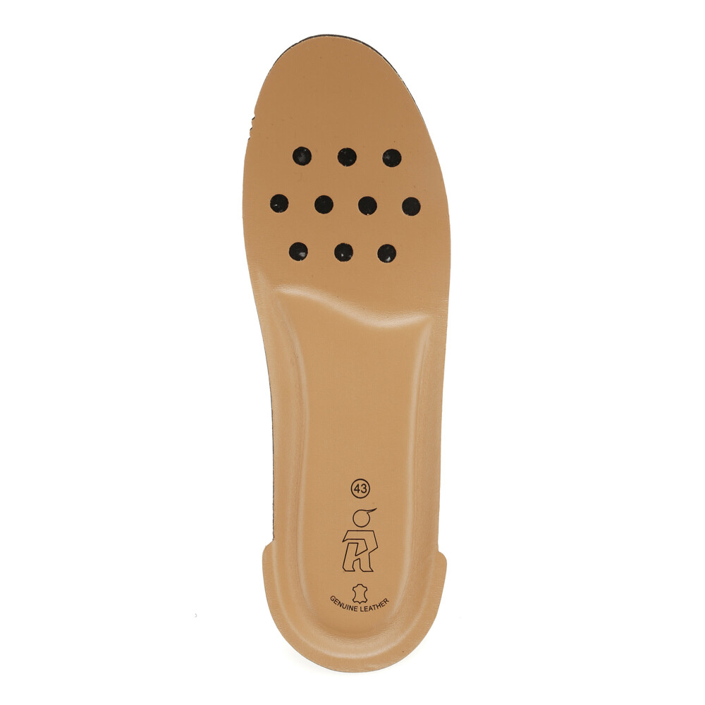 Αποσπώμενος πάτος: Σύνθεση από α) αφρό πολυουρεθάνης για απορρόφηση των κραδασμών με β) επένδυση από σουέτ (suede) δέρμα μοσχαριού για απαλή και βελούδινη υφή, που προσφέρει αίσθηση πολυτέλειας και ποιότητας στο εσωτερικό του παπουτσιού, κατάλληλη απορρόφηση της υγρασίας.