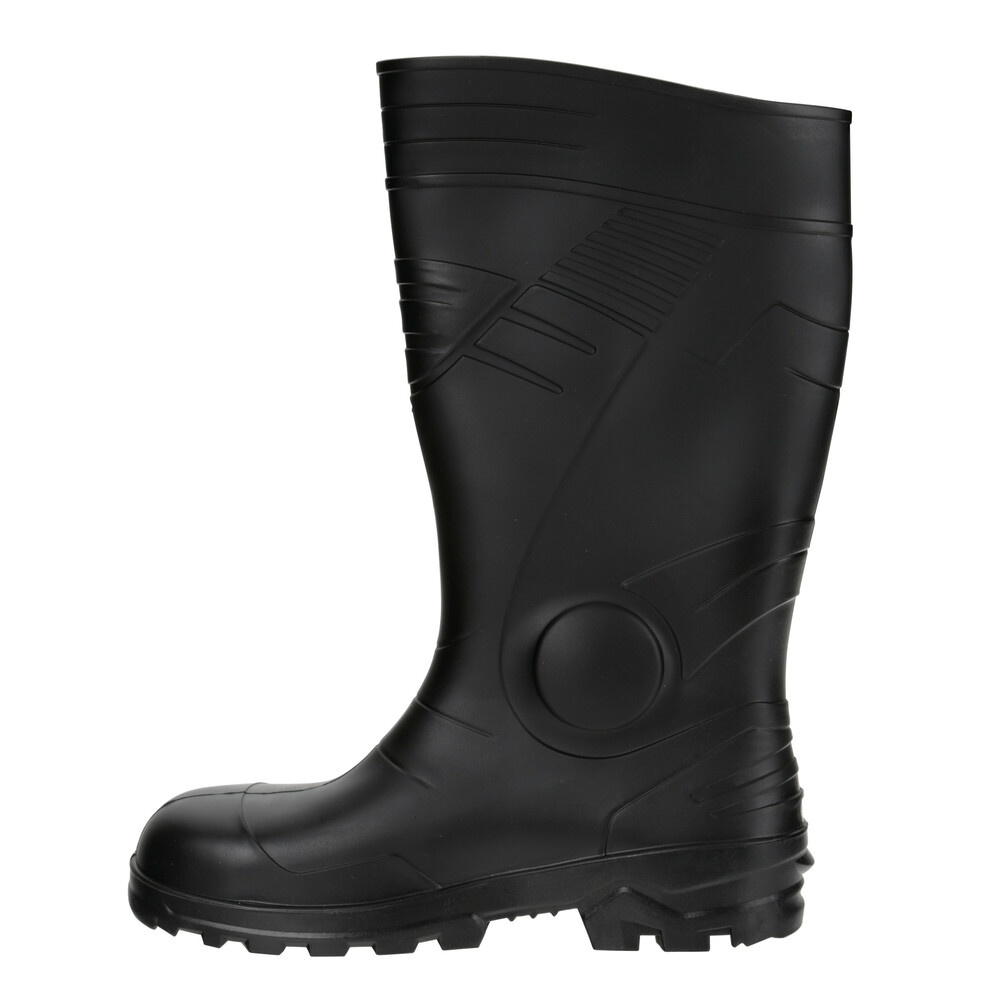Αδιάβροχες μπότες εργασίας με κομψό σχεδιασμό με τα χαρακτηριστικά ασφαλείας που απαιτούνται στα περιβάλλοντα εργασίας. Επάνω μέρος από PVC, επένδυση από πολυεστέρα και σόλα από PVC με καουτσούκ νιτριλίου. Αντοχή σε κραδασμούς έως 200 J και αντοχή έως 15 kN σε νερό. Σόλα με υψηλή αντοχή στην ολίσθηση.