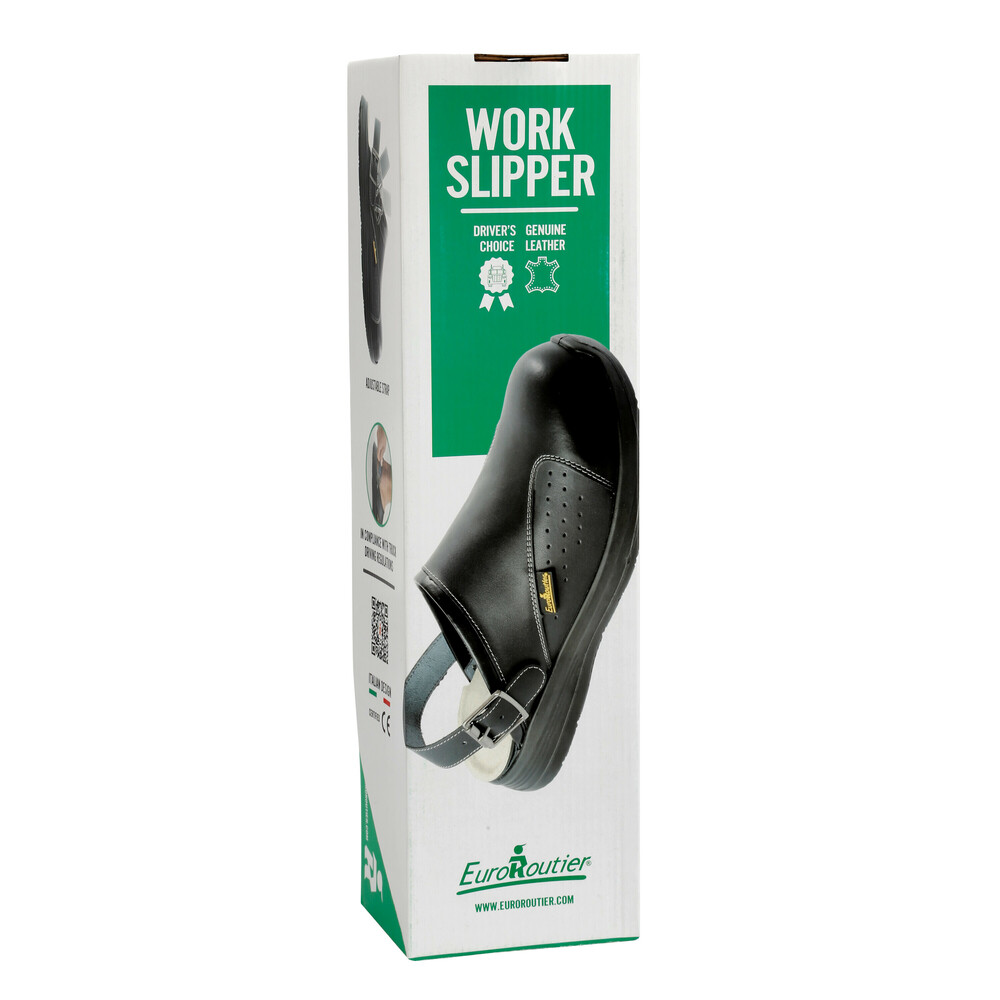 Πιστοποιημένα παπούτσια εργασίας σε στυλ σαμπό Work Slipper από την εταιρία Euroroutier, ιταλικής προέλευσης, κατασκευασμένα από υψηλής ποιότητας υλικά σε μαύρο χρώμα με λευκές ραφές. Είναι σχεδιασμένα για να συνδυάζουν άνεση, στυλ και προστασία στο εργασιακό σας περιβάλλον, αντέχουν στις απαιτήσεις της καθημερινής εργασίας και αποτελούν την τέλεια επιλογή για επαγγελματίες, που χρειάζονται ελαφριά και πρακτικά υποδήματα. Ιδανικά για να προσφέρουν την απαραίτητη προστασία και να μειώσουν την κούραση κατά τη διάρκεια της ημέρας. Τα παπούτσια εργασίας σε στυλ σαμπό Work Slipper είναι, επίσης, κατάλληλα για επαγγελματίες οδηγούς για να χαρίζουν άνεση και στυλ σε κάθε ταξίδι!