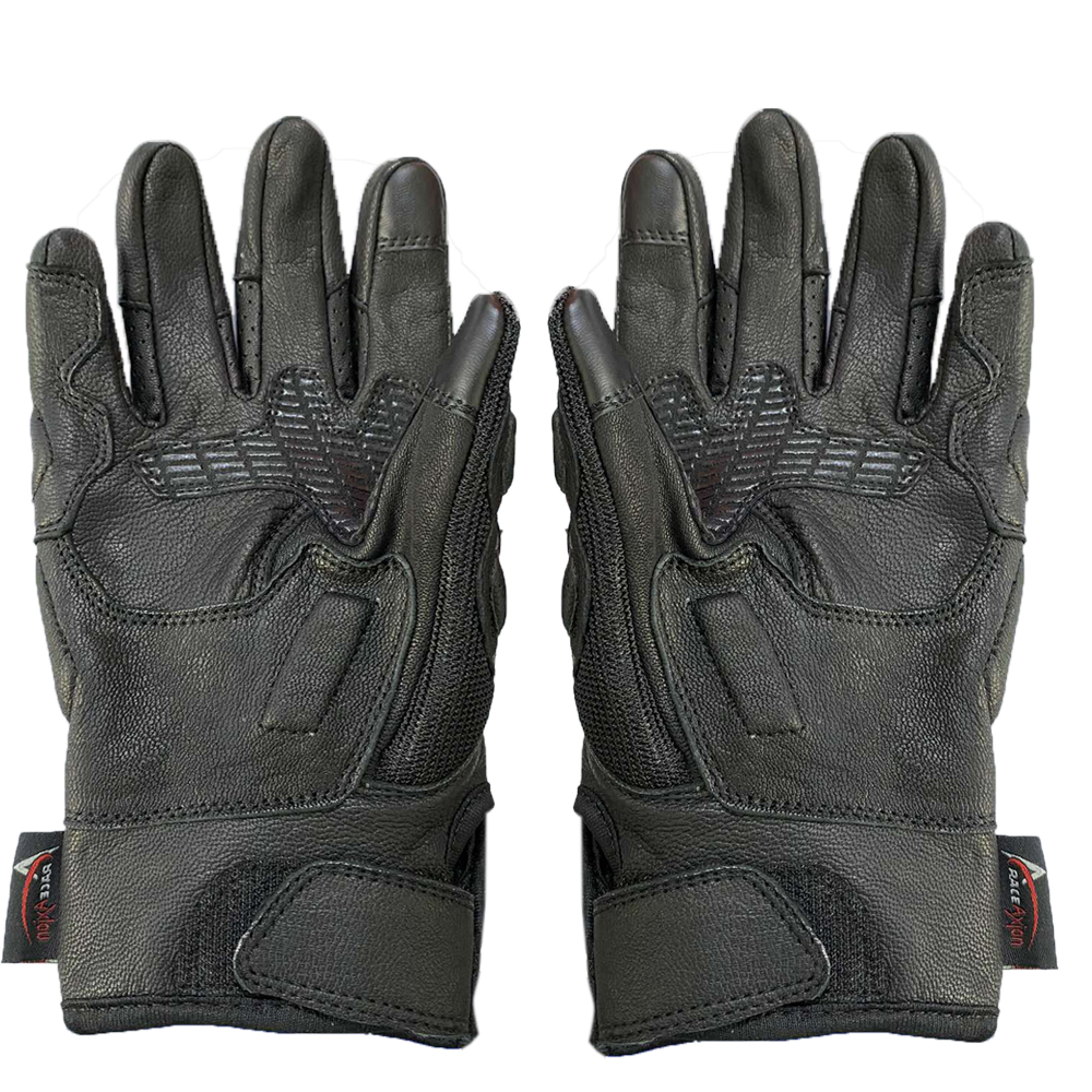 Γάντια μηχανής δερμάτινα με κόκκαλο προστασίας σε μαύρο χρώμα, από την εταιρεία RACE AXION.