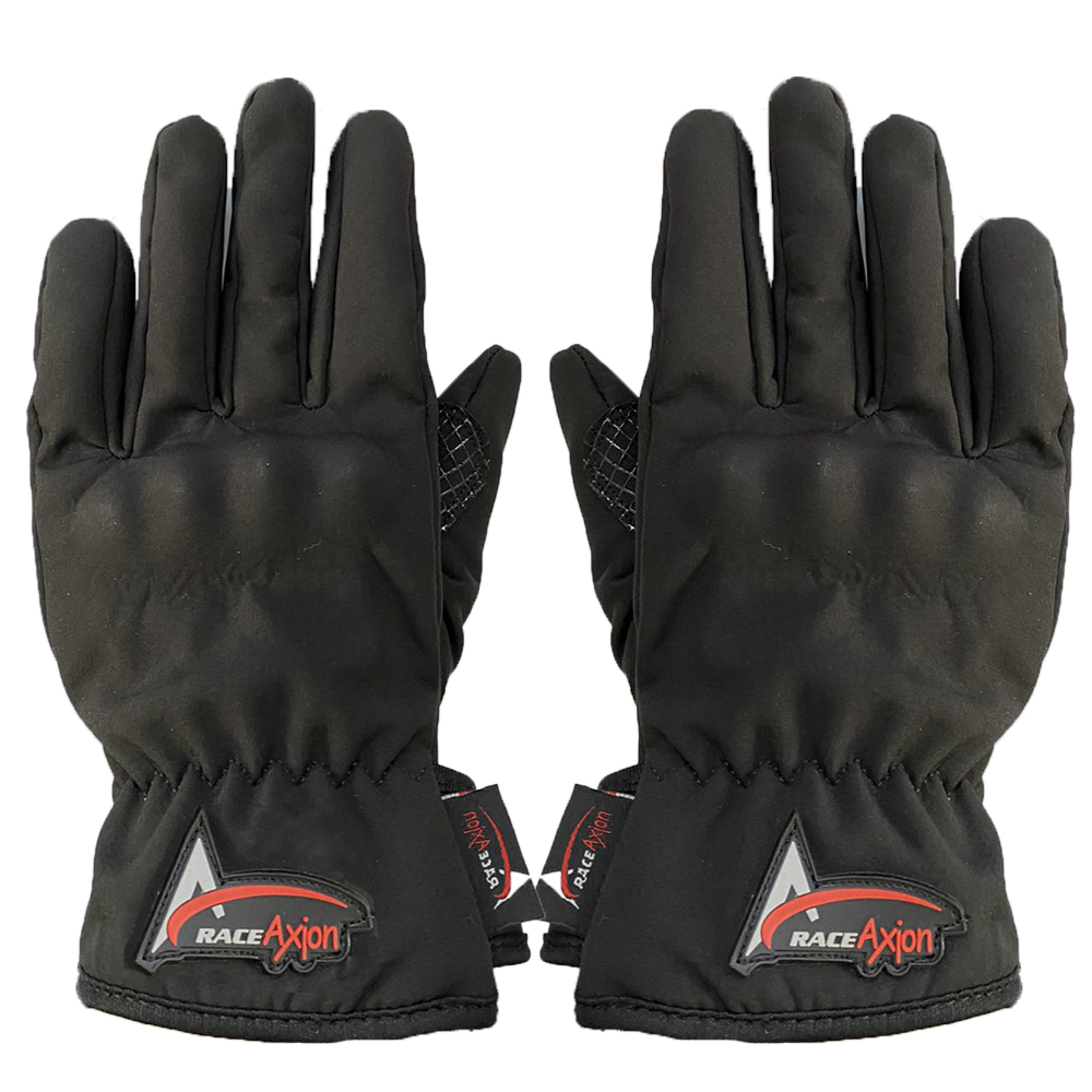 Γάντια μηχανής με λεία υφή με μεμβράνη και κόκκαλο προστασίας σε μαύρο χρώμα, από την εταιρεία RACE AXION.