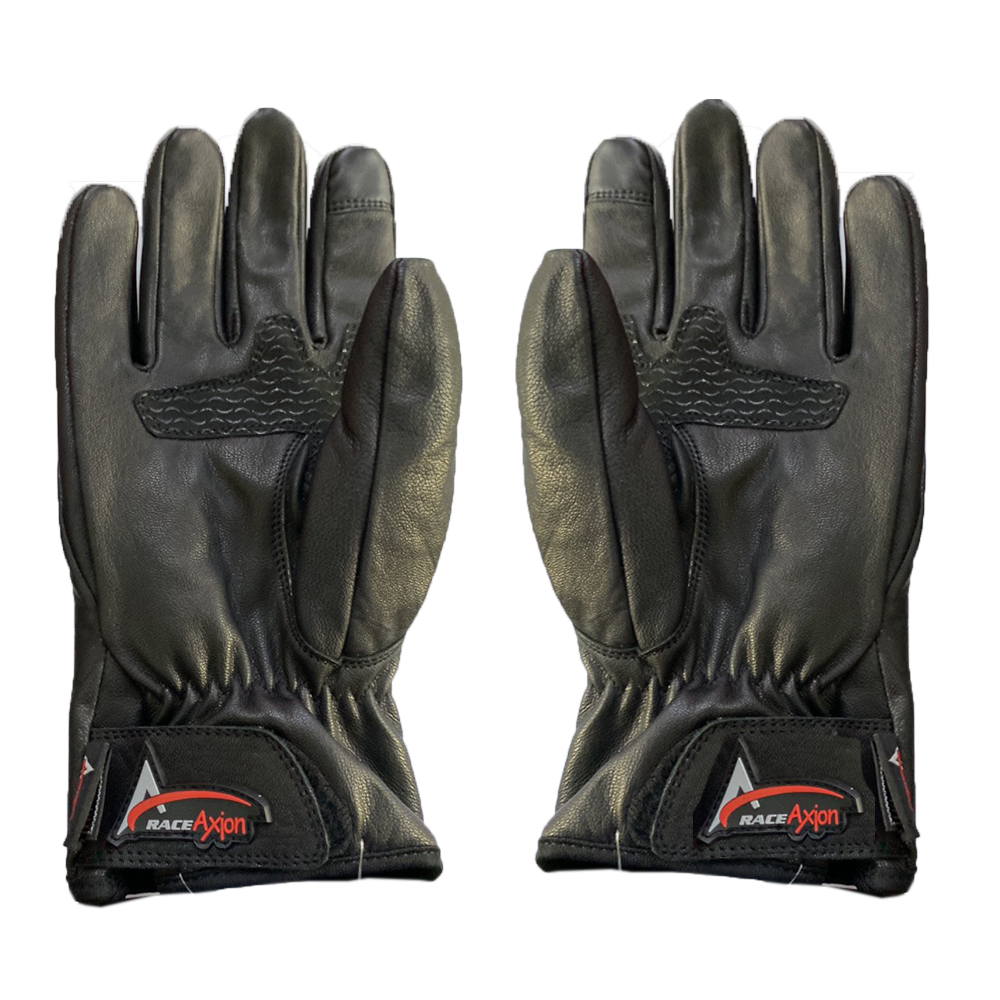 Γάντια μηχανής δερμάτινα αδιάβροχα με μεβράνη και κόκκαλο προστασίας σε μαύρο χρώμα, από την εταιρεία RACE AXION.