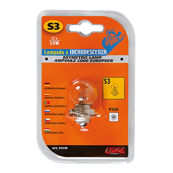 Λάμπα Aλογόνου S3, 12V/15W, P26s. Συσκευασία ενός τεμαχίου.
