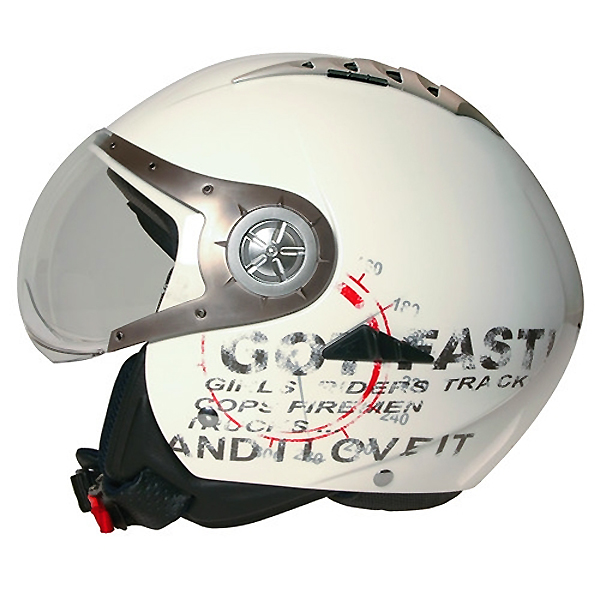 Κράνος Tomcat Ανοιχτού Τύπου Go Fast ΛευκόΜε γρήγορο σύστημα απελευθέρωσης λουριού δεσίματος. Εγκεκριμένο, τύπου ECE R22-05. X-Large (Περιφέρεια Κεφαλιού 61-62cm)