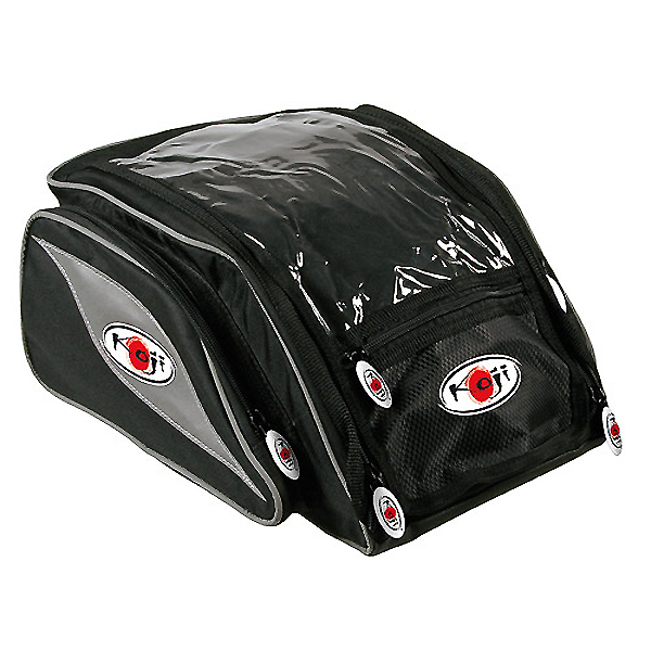 Τσάντα αποθήκευσης και μεταφοράς προσωπικών αντικειμένων και διαφόρων μικρο-πραγμάτων, κατασκευασμένη από πολυεστερικό ύφασμα υψηλής ποιότητας και αντοχής. Η τσάντα T-MAXTER TANK της KOJI, διαθέτει 4 πρακτικές θήκες αποθήκευσης και λαβή χειρός για την μεταφορά της κατά την διάρκεια απομάκρυνσης από την μοτοσικλέτα σας. Στο πίσω μέρος έχει 2 υφασμάτινα "πτερύγια" με ενισχυμένους μαγνήτες για να τοποθετείται στο μεταλλικό ντεπόζιτο της μηχανής σας. Στην συσκευασία περιλαμβάνεται νάιλον κάλυμμα με λάστιχο που προσαρμόζεται στην τσάντα και την προστατεύει από την βροχή, καθώς επίσης και ενισχυμένος υφασμάτινος ιμάντας με 2 γάντζους για επιπρόσθετη συγκράτηση και εφαρμογή της τσάντας πάνω στο ντεπόζιτο.