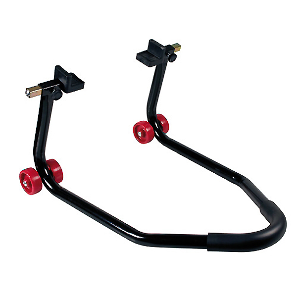 Σταντ για πίσω τροχό μοτοσυκλέτας σε μαύρο χρώμα. Σχεδιασμένο για μέγιστη σταθερότητα και ρυθμιζόμενη θέση για μέγιστη ευελιξία.