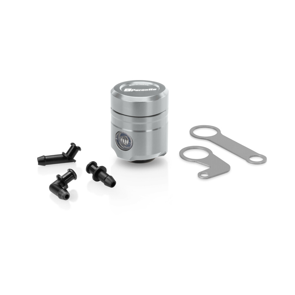 ΔΟΧΕΙΟ ΥΓΡΩΝ ΦΡΕΝΩΝ / ΣΥΜΠΛΕΚΤΗ MOTO 12ml ΣΕ ΑΣΗΜΙ ΧΡΩΜΑ PARAXITE - 1 ΤΕΜ. Κατασκευάζεται από συμπαγές υλικό με μηχανήματα αριθμητικού ελέγχου και στη συνέχεια υποβάλλεται σε διαδικασία ανοδίωσης. Συσκευασία 1 τεμαχίου