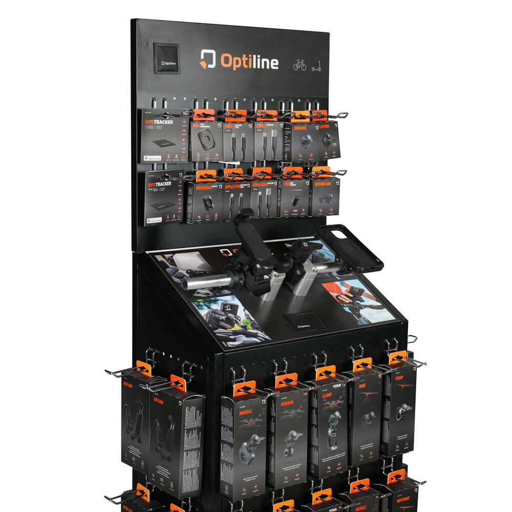 ΕΚΘΕΤΗΣ/ΣΤΑΝΤ ΜΕ ΤΡΕΙΣ ΠΛΕΥΡΕΣ ΚΑΙ 4 ΟΠΙΣΘΙΑ ΡΑΦΙΑ 185x50x28cm OPTILINE