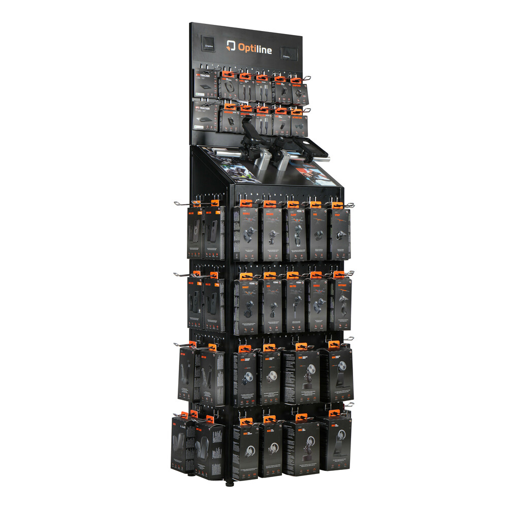 ΕΚΘΕΤΗΣ/ΣΤΑΝΤ ΜΕ ΤΡΕΙΣ ΠΛΕΥΡΕΣ ΚΑΙ 4 ΟΠΙΣΘΙΑ ΡΑΦΙΑ 185x50x28cm OPTILINE " Πωλείται χωρίς προϊόντα Βάρος: 18 κιλά Συσκευασία 1 τεμαχίου