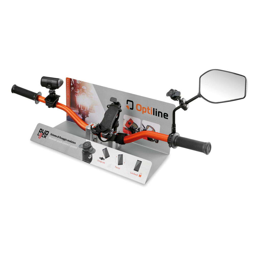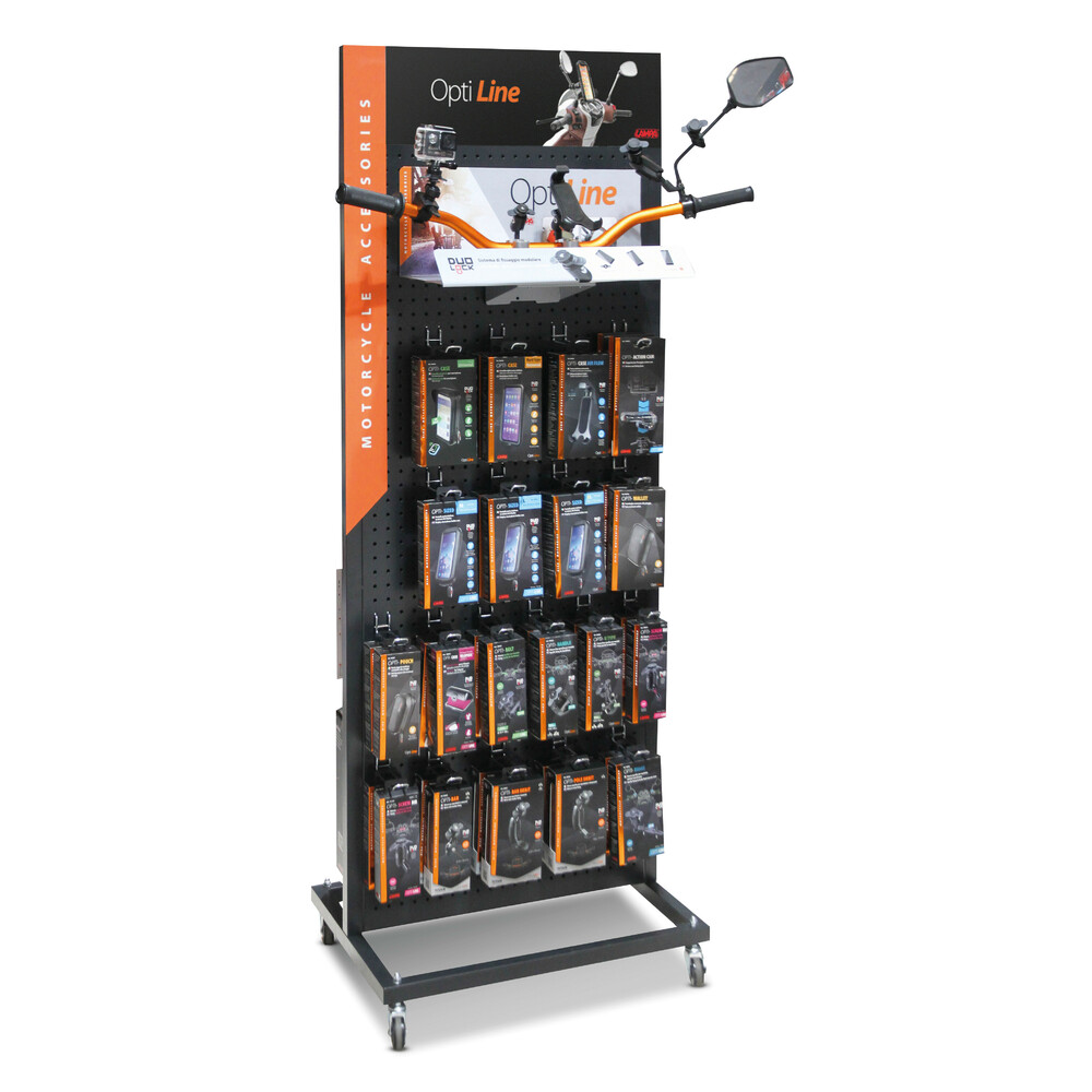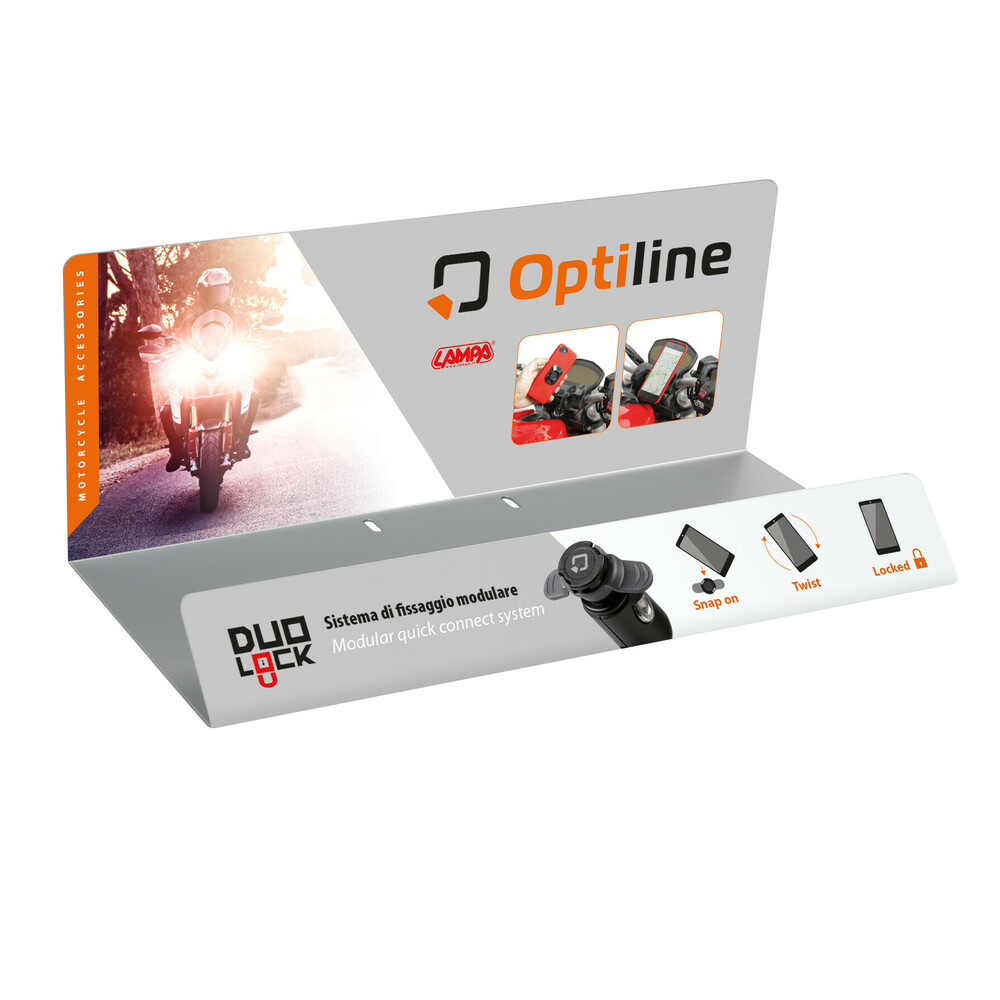 ΕΚΘΕΤΗΣ ΓΙΑ ΜΠΑΡΑ ΤΙΜΟΝΙΟΥ MOTO ΔΕΙΓΜΑΤΙΣΜΟΥ ΠΡΟΙΟΝΤΩΝ OPTILINE - 1 TEM. Από ατσάλι, βαμμένο σε ασημί χρώμα. Διαστάσεις: 49x22x19,5 cm Συσκευασία 1 τεμαχίου