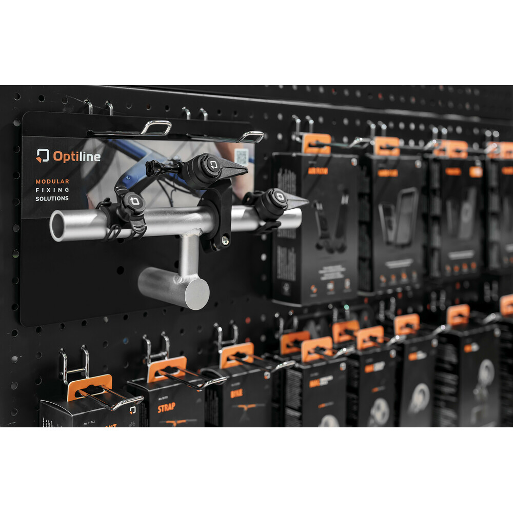 ΕΚΘΕΤΗΣ (STAND) ΚΡΕΜΑΣΤΟΣ ΜΕ ΜΕΤΑΛΛΙΚΗ ΜΠΑΡΑ ΓΙΑ ΠΡΟΙΟΝΤΑ OPTILINE MOTO 300x250x105mm BENCH LAMPA - 1 τεμ.